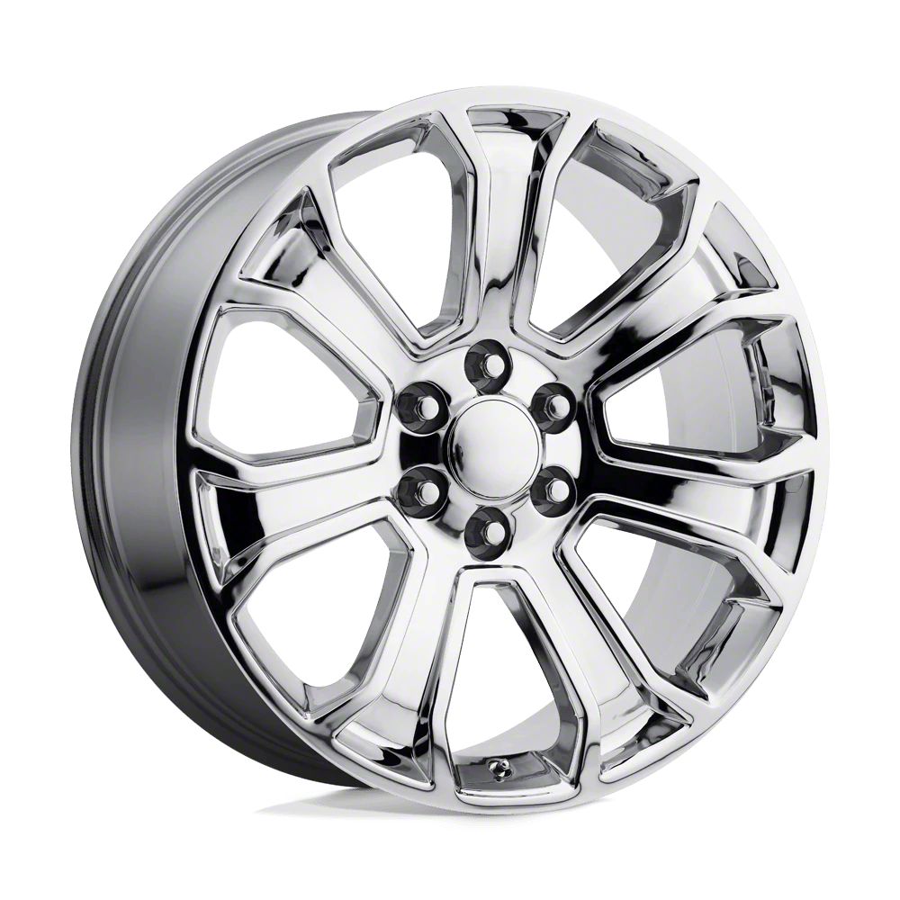 Performance Replicas PR166 Chrome 6-Lug Wheel; 20x9; 24mm Offset The Performance Replicas PR166 Chrome 6-Lug Wheel combines a sleek, sophisticated design with premium construction that enhances the visual appeal and complements a wide range of vehicle styles. This wheel is perfect for those seeking to make a bold statement while maintaining elegance and robustness.