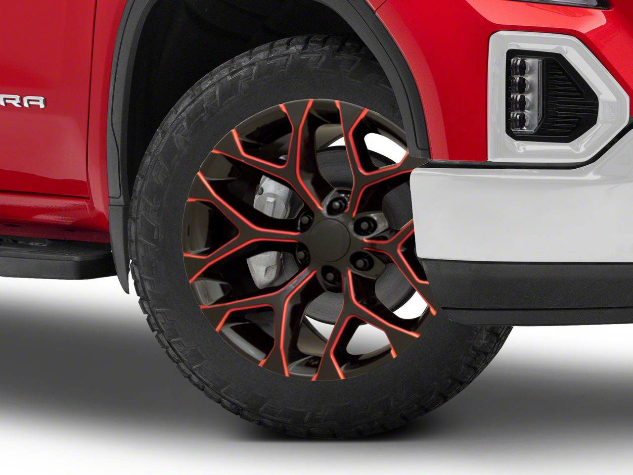 Application. This Performance Replicas PR176 Gloss Black Red Milled 6-Lug Wheel; 22x9; 24mm Offset with a backspace of 5.945 Inch, 151.1mm; and bolt pattern of 6 x 139.7mm (6 x 5.5-Inch), contributes to alignment, driving stability, and ensures a perfect fit with the vehicle model. Designed to fit the 2019-2026 Sierra 1500. Sold individually.