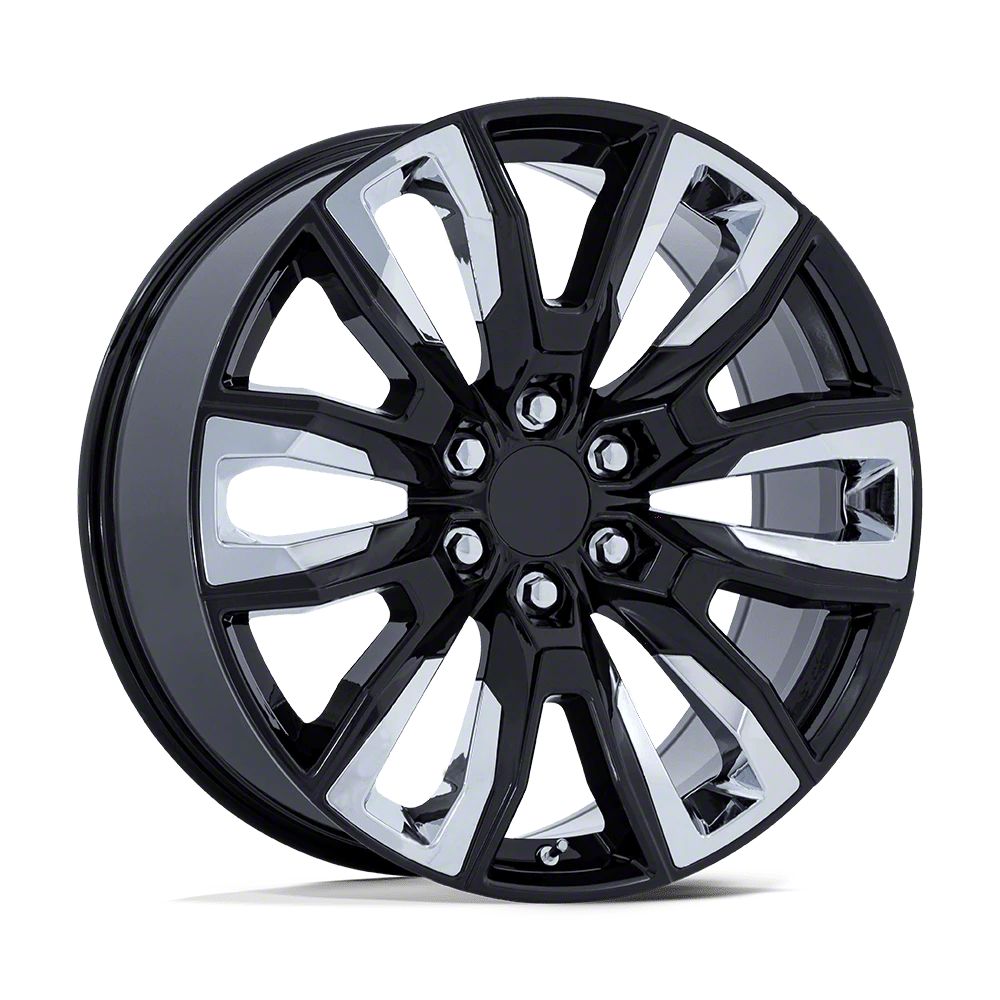 Application. This Performance Replicas PR225 Gloss Black with Chrome Accents 6-Lug Wheel; 22x9; 28mm Offset, with a backspace of 6.102 Inch, 155mm and bolt pattern of 6 x 139.7mm (6 x 5.5-Inch), is designed to provide not only a striking visual appeal but also to contribute significantly to the alignment and driving stability of the vehicle. Its specifications ensure a precise fit with the vehicle model, enhancing the overall driving experience. Built to fit the 2019-2026 Silverado 1500, this wheel is sold individually.
