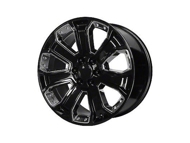 Performance Replicas PR113 Gloss Black with Chrome Accents 6-Lug Wheel; 22x9; 24mm Offset The Performance Replicas PR113 Gloss Black with Chrome Accents 6-Lug Wheel showcases a blend of race-inspired aesthetics, ideal for those seeking a premium and robust appearance. Its design complements various vehicle styles, adding sophistication.