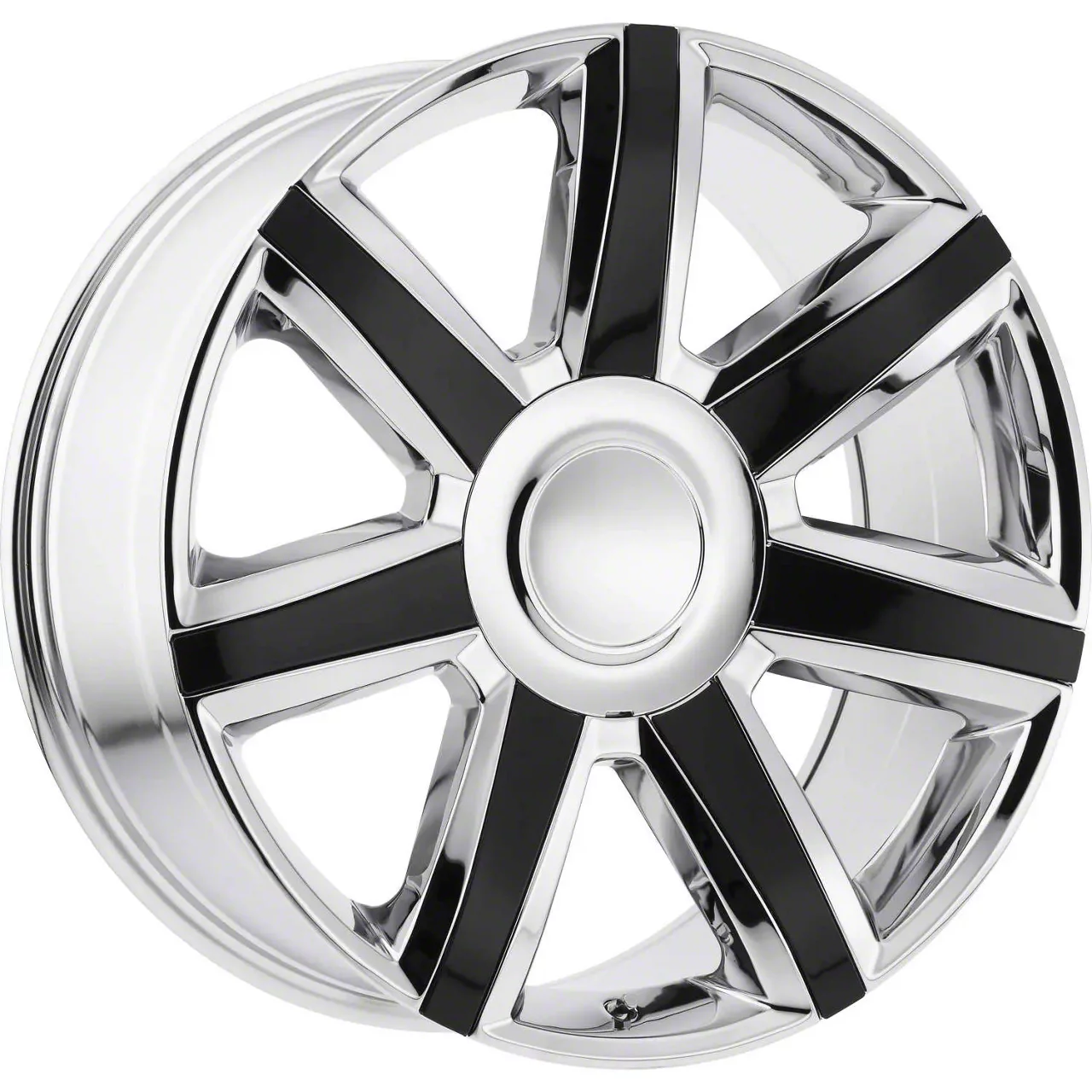 Performance Replicas PR164 Chrome with Black Accents 6-Lug Wheel; 22x9; 24mm Offset. Enhance your vehicle's look with the Performance Replicas PR164 Chrome with Black Accents 6-Lug Wheel. This premium wheel adds a touch of elegance and class to your vehicle, complementing its sophisticated aesthetic.