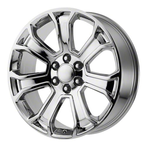 The 22x9 Performance Replicas PR166 Chrome 6-Lug Wheel; ; 24mm Offset has a chrome finish that is accomplished in a 3-step plating process that includes copper, nickel and chrome.