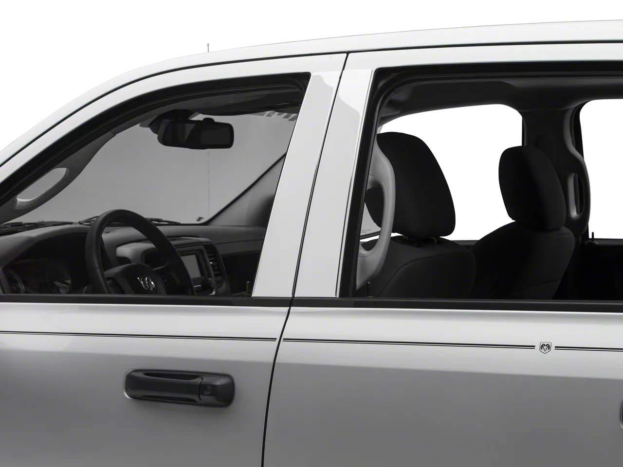 Classy Protection. Give your RAM truck’s exterior a classy new look with Polished Pillar Post Covers. These pillar post covers add a sleek accent to your truck’s door pillar posts. Its polished finish works as a design complement to your truck’s polished window sill accents enhancing your RAM truck’s overall look. Additionally, these post covers are capable of protecting your truck’s finish from minor dents and scratches thanks to its all-steel construction.