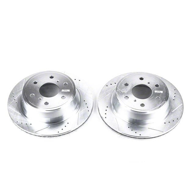 All the Trimmings. When you're looking for a pair of rear brake rotors to beat out all others, discover the PowerStop Evolution Cross-Drilled & Slotted Rotors. With peerless construction and a dynamite design, these rotors will provide instant improved performance on your select model GMC Sierra 1500.