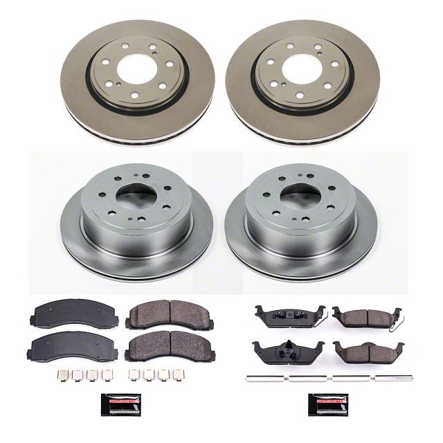 Complete Brake Replacement. The PowerStop OE Replacement Brake Rotor and Pad Kit provides a full front and rear braking solution for 2012-2014 Ford F-150 Models. Designed for bolt-on installation, this kit is ideal for replacing worn components while restoring factory braking performance. It includes everything needed for a comprehensive refresh of your braking system with components engineered for consistent stopping power and quiet operation.