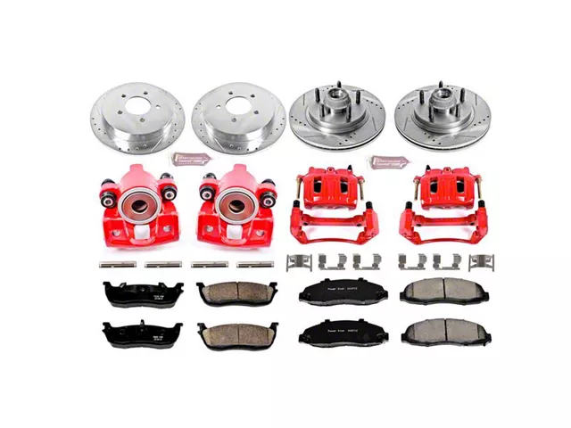PowerStop Z23 Evolution Brake Rotor, Pad and Caliper Kit. The PowerStop Z23 Evolution Brake Kit is engineered to provide superior braking performance and an enhanced aesthetic for your 2WD F-150. This sporty front and rear model kit includes polished chrome finish 5-lug drilled and slotted rotors, racing red finish calipers, and matte black finish carbon ceramic pads. Designed for direct replacement, this kit ensures a perfect fit and easy installation.