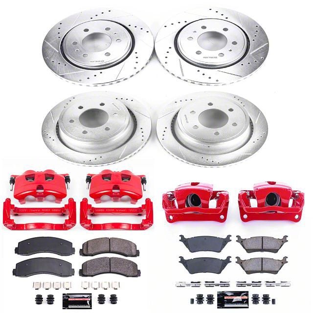 High Performance Brake Kit. Replace your worn out Brakes with these PowerStop Z23 Evolution Sport 6-Lug Brake Rotor, Pad and Caliper Kit; Front and Rear and cruise safely in your F-150. Made for consistent stopping power on any day, it features detailed manufacturing with cast iron rotors and a high cooling design featuring drilling and slots to better dissipate heat.