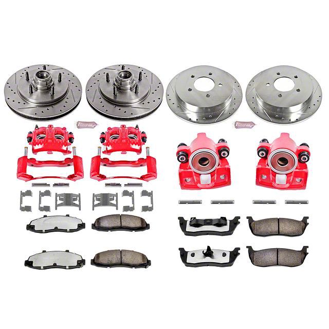 Powder Coated Cast Iron. Unleash unmatched braking performance with the PowerStop Z36 Extreme Truck and Tow 5-Lug Brake Rotor, Pad, and Caliper Kit. Specially designed for the 1999-Early 2000 Ford F-150 Lightning models, this kit boasts vibrant red powder-coated cast iron front calipers in both 2-piston and 1-piston configurations.