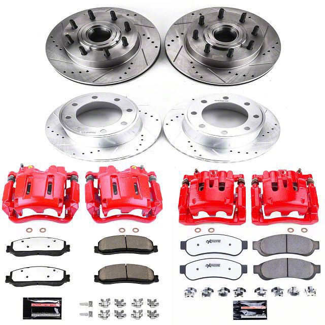 Extreme Stopping Power. When it comes to heavy-duty trucks like your F-250 Super Duty, reliable braking power is non-negotiable, that's where the PowerStop Z36 Extreme Truck and Tow 8-Lug Brake Rotor, Pad and Caliper Kit; Front and Rear comes in. The rotors are precision-machined with drilled and slotted surfaces. This design dissipates heat more effectively, enhances cooling, and prevents rotor warping, ensuring optimal braking under heavy loads. The brake pads feature a high-quality carbon-fiber ceramic compound that delivers superior heat resistance, reducing brake fade and ensuring long-lasting performance.