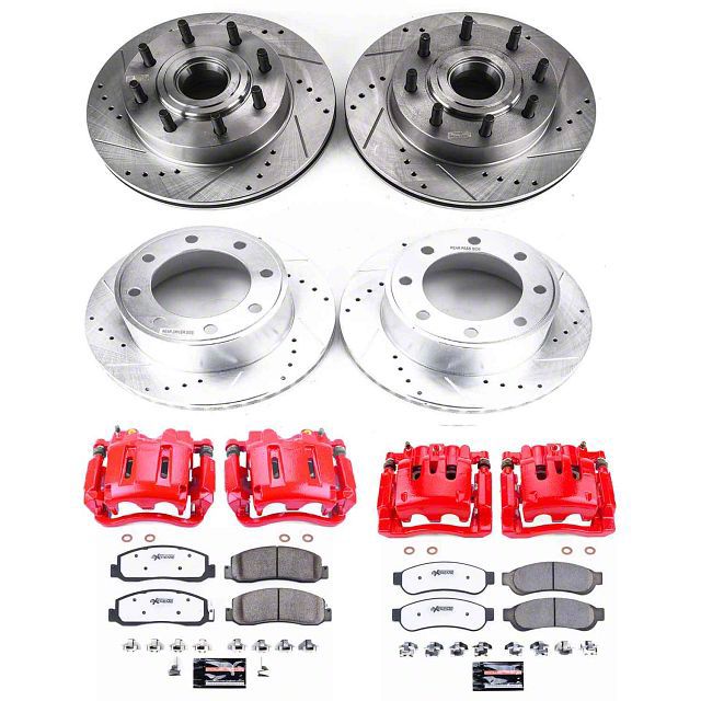 Superior Brakes for Maximum Performance. Give your F-350 maximum braking performance with the PowerStop Z36 Extreme Truck and Tow 8-Lug Brake Rotor, Pad and Caliper Kit; Front and Rear Placement. This kit includes heavy-duty calipers, brawny rotors, and specialized Z36 brake pads to give your truck the capabilities to take on more aggressive towing and hauling jobs. Additionally, this brake kit features bright red calipers and silver zinc plated rotors to give your ride a high-performance style that's sure to make it stand out from the crowd.