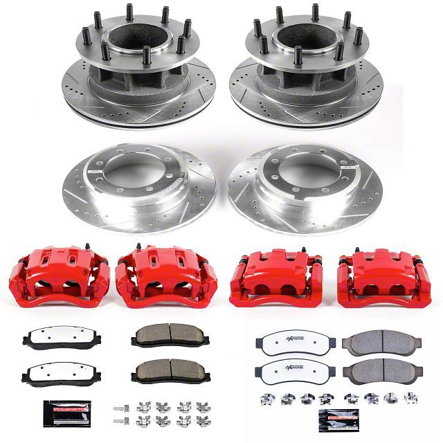 Top-Class. The PowerStop Z36 Extreme Truck and Tow 8-Lug Brake Rotor, Pad, and Caliper Kit is a top-of-the-line braking system upgrade for your Ford 4WD. This kit includes front and rear brake rotors that have been drilled, slotted, and zinc-plated for superior durability and performance. The pads are made from top-class stainless steel for long-lasting wear, while the calipers have been precision-engineered to fit your 2WD Ford F-350 Super Duty DRW model. So, if you're looking to take your truck's braking system to the next level, the PowerStop Z36 Extreme Truck, and Tow 8-Lug Brake Rotor, Pad, and Caliper Kit is a perfect choice.
