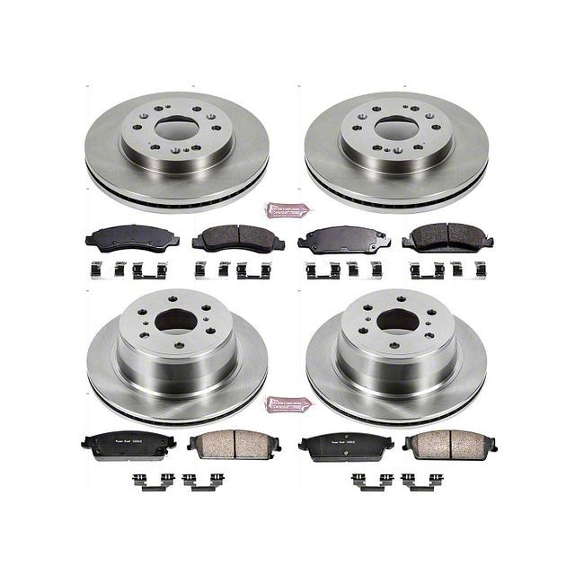 Complete Front and Rear Kit. This PowerStop OE Replacement Brake Rotor &Pad Kit comes complete and includes (2) 12.99" front rotors, (2) 13.58" rear rotors, (2) pairs of ceramic front brake pads, (2) pairs of ceramic rear brake pads.