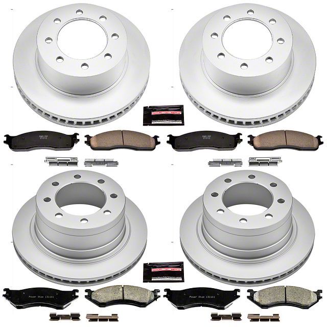 Exceptional Performance. The PowerStop Z17 Evolution Plus 8-Lug Brake Rotor and Pad Kit provides exceptional stopping power for your vehicle, whether you're carrying heavy loads or driving in everyday traffic. The combination of drilled and slotted rotors with carbon-fiber ceramic pads ensures shorter stopping distances and greater control, even under demanding conditions.