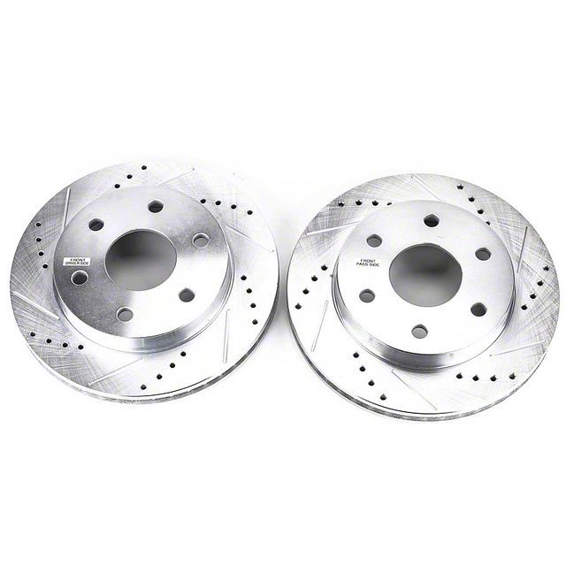 Slotted and Drilled Rotors. Upgrade your front brake rotors with these PowerStop Evolution Cross-Drilled & Slotted 6-Lug Rotors. These slotted and drilled rotors increase brake efficiency with heat-dissipating holes and rounded slots that scrape debris off the brake pad. They are milled to perfection with a max DTV (Disc Thickness Variation) tolerance of 0.0005 inches and a max rotor run-out of 0.0032 inches. With these kinds of tolerances, brake vibration is virtually eliminated.