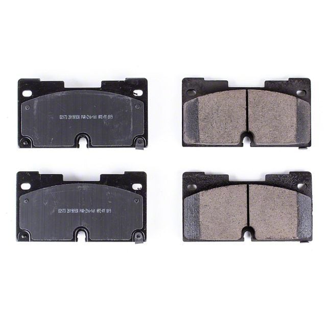 Advanced Ceramic Compound. These PowerStop brake pads feature advanced ceramic braking compound designed to increase stopping power while decreasing wear. These pads are also thermally scorched to decrease break-in times and are manufactured using OE-style positive mold technology for consistent friction density, and reduced premature wear. Moreover, these pads feature tough powder-coated steel backing plates for durability and consistent performance.