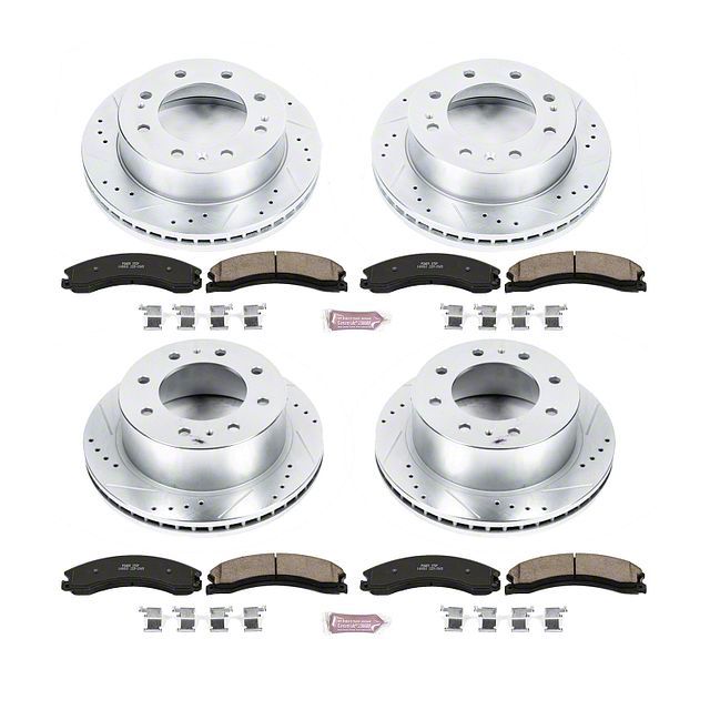 Superior Braking Performance for Heavy-Duty Applications. The PowerStop Z23 Evolution Sport 8-Lug Brake Rotor and Pad Kit is designed to provide your truck with exceptional stopping power and durability. Whether you're hauling heavy loads or driving in demanding conditions, this kit enhances braking performance with cross-drilled and slotted rotors that improve heat dissipation and reduce brake fade.