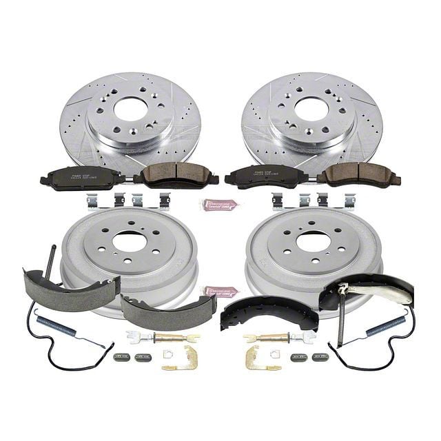 Complete Kit. The kit includes brake pads, rotors, and drums for your vehicle's front and rear braking systems. It's ideal if you want to completely overhaul the vehicle's brakes.