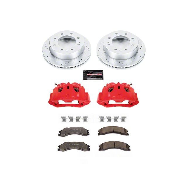 Red Powder Coating. The kit also includes red powder-coated cast iron calipers, equipped with two pistons for enhanced braking efficiency. Engineered with precision, this kit ensures a straightforward, drill-less installation, making it a practical choice for truck owners. Experience a significant upgrade in your Chevrolet Silverado 2500 HD's braking performance with the PowerStop Z36 Extreme Truck and Tow 8-Lug Brake Rotor, Pad, and Caliper Kit.