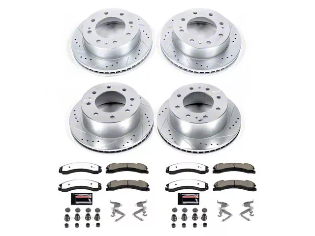 Complete Rotor and Pad Kit for the Front and Rear. This PowerStop front and rear brake rotor and pad kit comes with front and rear rotors featuring a cross-drilled and slotted design as well as a complete set of the Z36 carbon-fiber ceramic brake pads. This kit also includes all the installation hardware you’ll need as well as a packet of high-temperature lubricant.