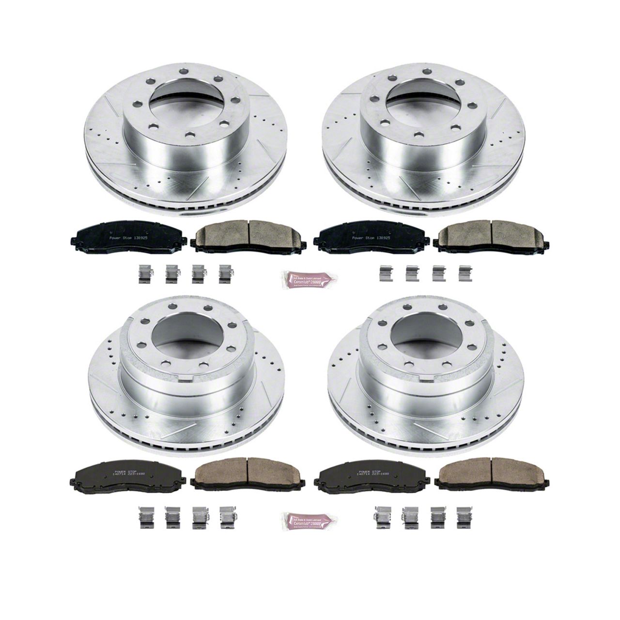 Superior Stopping Power. Give your Ford Super Duty more stopping power with the help of this front and rear PowerStop Z23 Evolution Sport Brake Rotor & Pad Kit. You can use this kit for both casual and high-performance applications for powerful yet comfortable braking. With the combination of the cross-drilled rotors and Z23 series brake pads, you’ll experience quicker and smoother stopping action compared to stock.