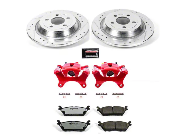 Complete Rear Kit. PowerStop included in this brake system upgrade high-quality components built for reliable performance. It consists of 2 drilled and slotted rear rotors, 2 pairs of Z36 severe-duty rear brake pads, and calipers. It also comes with a brake pad lubricant and all the hardware needed for a hassle-free installation process.