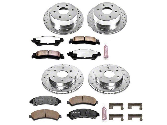 Complete Front and Rear Kit. This PowerStop Z36 kit contains everything you need to upgrade your brake rotors and pads. From brake lubricant to premium stainless steel hardware kit, including pin bushings and matched rotors and pads, all you need to do is decide if you want to get the kit with or without calipers.