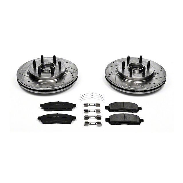 Complete Kit. This PowerStop brake kit includes (2) cross-drilled and slotted rotors front rotors, and (2) pairs of ceramic front brake pads.
