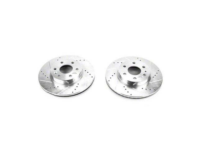 Description. PowerStop drilled and slotted rotors provide a bolt-on upgrade for improved brake cooling and performance. Precision cross-drilled for maximum cooling and maximum performance during extreme conditions. The rounded slots sweep away gas, debris, and moisture to keep a clean friction contact patch on the rotor surface providing smooth, safe braking. Silver zinc dichromate plating resists rust and corrosion. With a direct OE fit, there are no special modifications needed. Upgrading the looks and stopping power of your vehicle has never been easier.