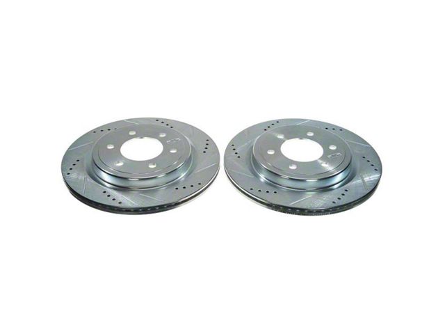 Description. PowerStop drilled and slotted rotors provide a bolt-on upgrade for improved brake cooling and performance. Precision cross-drilled for maximum cooling and maximum performance during extreme conditions. The rounded slots sweep away gas, debris, and moisture to keep a clean friction contact patch on the rotor surface providing smooth, safe braking. Silver zinc dichromate plating resists rust and corrosion. With a direct OE fit, there are no special modifications needed. Upgrading the looks and stopping power of your vehicle has never been easier.