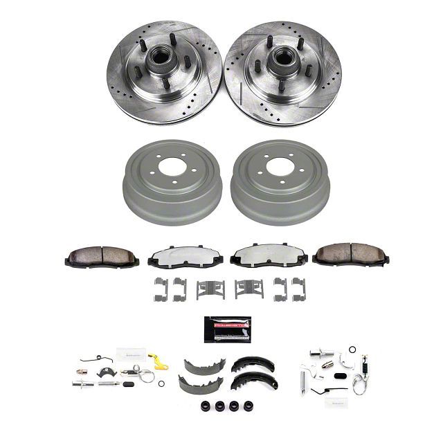 PowerStop Z23 Evolution Sport 5-Lug Brake Rotor, Pad and Drum Kit; Front and Rear (01-02 2WD F-150 w/ Rear Drum Brakes)Find parts that fit my vehicle