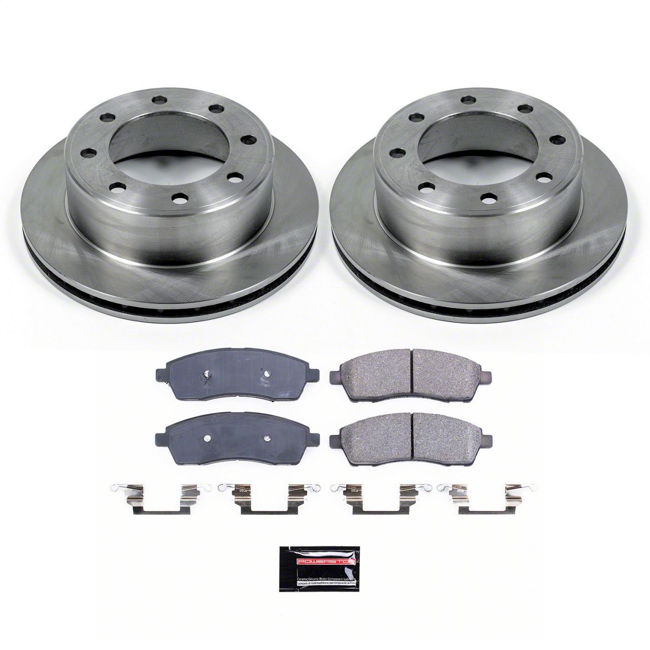 Precision-Machined Replacement Rotors. Each PowerStop OE Replacement 8-Lug Brake Rotor and Pad Kit is manufactured with exacting tolerances, providing a flat, true surface that promotes even pad wear, reduced vibration, and quieter braking. The precision machining ensures a snug fit and immediate compatibility.