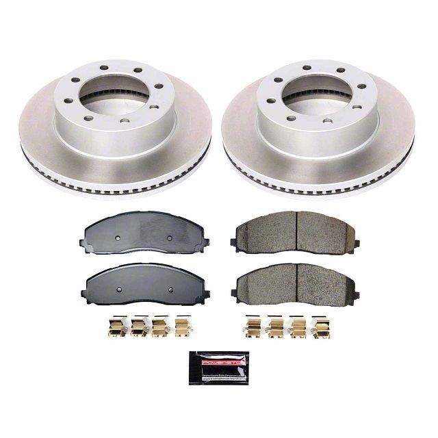 Heavy-Duty Stopping Power. The PowerStop Semi-Coated 8-Lug Brake Rotor and Pad Kit is designed as a performance upgrade for Ford Super Duty owners who demand more braking confidence under load. Featuring Z36 carbon-fiber ceramic brake pads, this kit enhances stopping power for lifted trucks, towing setups, and mountain driving scenarios, all while maintaining low dust output and quiet performance. It's the perfect choice for work and recreational vehicles alike.