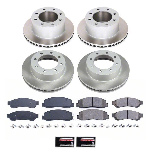 Complete Brake Overhaul with Better Performance and Less Noise. This PowerStop kit gives your Super Duty the stopping power it needs with a matched set of rotors and ceramic pads for both front and rear axles. Designed for 8-lug 4WD trucks, this setup is ideal for daily driving and light-duty hauling, delivering quieter operation and better heat management than worn OEM parts.
