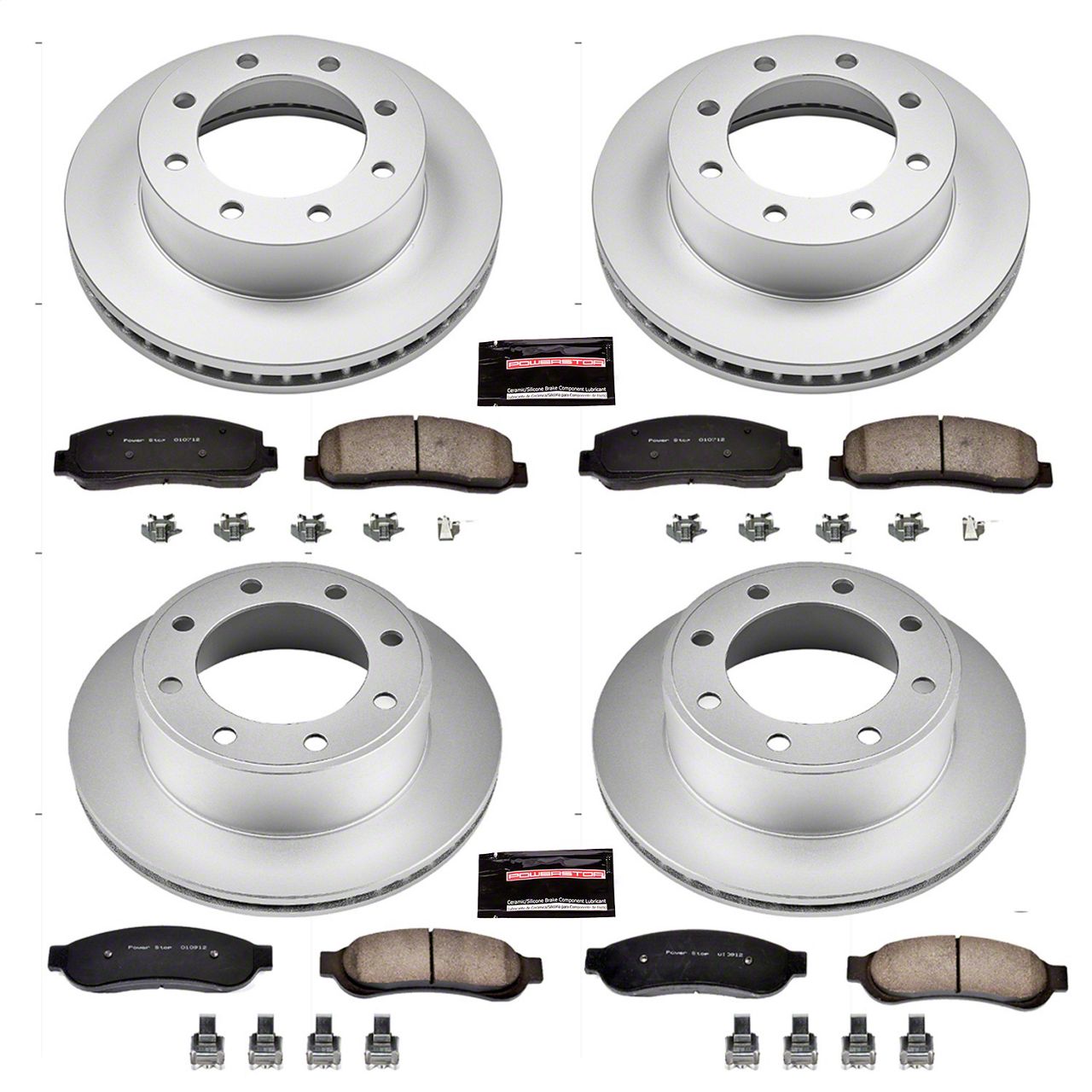 Complete Brake Upgrade Solution. The PowerStop Z17 Evolution Plus Brake Rotor and Pad Kit delivers a reliable and efficient upgrade for both the front and rear braking systems of 2005 – early 2005 4WD Ford F-250 Super Duty models. Designed for smooth stopping power with reduced dust and noise, this kit enhances everyday drivability and performance, making it ideal for daily use, towing, and work applications.
