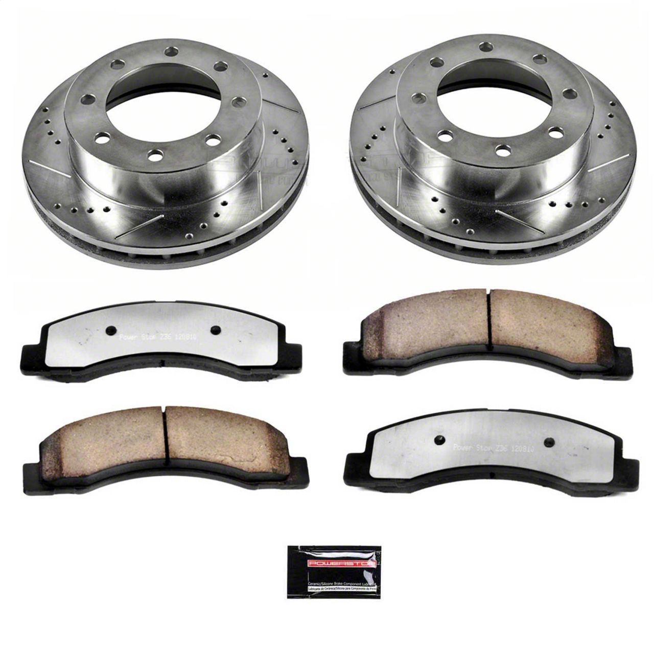 Heavy-Duty Braking Performance. The PowerStop Z36 Extreme Truck and Tow 8-Lug Brake Rotor and Pad Kit is engineered for vehicles that demand superior stopping power under heavy loads. Designed to deliver consistent, fade-free braking for towing, hauling, and demanding driving conditions, this front brake kit combines rugged durability with precision performance. Specifically built to fit early 1999 four-wheel drive Ford F-250 Super Duty models, it ensures a direct-fit replacement that restores and enhances your truck’s braking capabilities.
