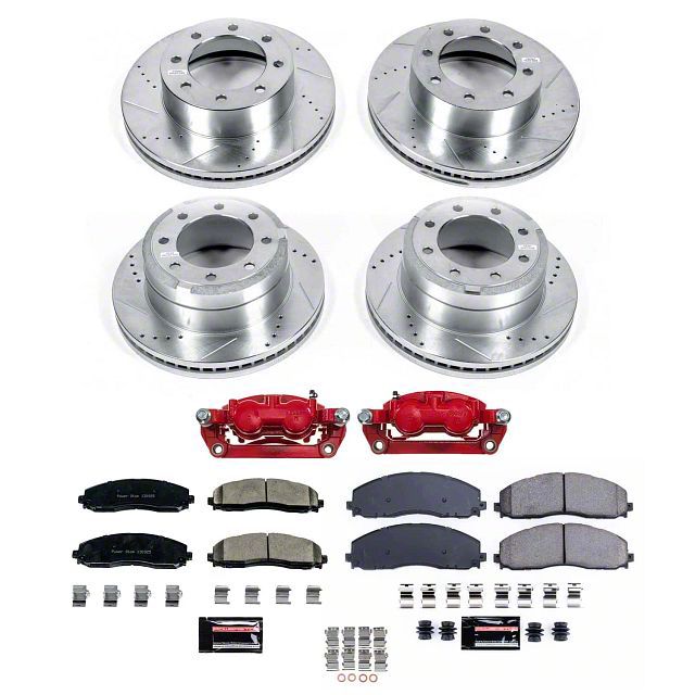 Direct Replacement. Made for the 4WD Ford F-350 Super Duty SRW models, this PowerStop Z23 Evolution Brake Rotor, Pad and Caliper Kit comes as a front and rear kit. Built to directly replace your ride’s front and rear brake pads, rotors, and pads, this kit includes 4 drilled and slotted 8-lug rotors, 2 racing red calipers, and 8 carbon ceramic brake pads that restore your ride to its stock functionality and ability.