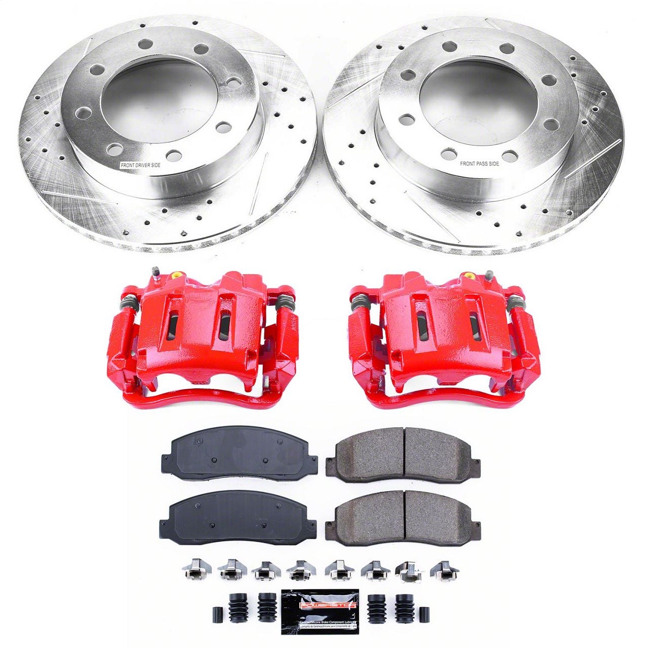 PowerStop is on a mission to deliver an easy way for any driver to upgrade their brakes - no matter where or how they use their vehicle. Forget standard, off-the-shelf parts. Our Z23 Evolution Sport Brake Upgrade Kit with Powder Coated Calipers comes with everything you need, from pads, rotors, calipers and premium stainless-steel hardware for an easy, bolt-on upgrade for your daily-driver. Along with increased braking power, the Carbon-Fiber Ceramic brake pads feature a low-dust formula to keep those wheels looking great while you say goodbye to nasty brake dust. These pads combine with Drilled & Slotted rotors to ensure a cool, smooth ride that protects against rust and corrosion. The Powder Coated Calipers not only protect against corrosion, but also really stand out behind your wheels! Give your daily-driver the easy and affordable performance upgrade it deserves with the Z23 Evolution Sport Brake Upgrade Kit with Calipers.