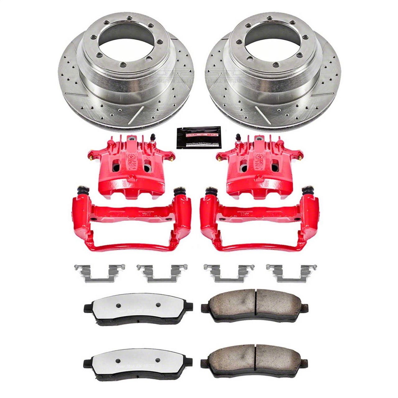 Application. This PowerStop Z36 Extreme Truck and Tow 8-Lug Brake Rotor, Pad and Caliper Kit fits 1999-Early 2000 Ford F-350 Super Duty DRW models.