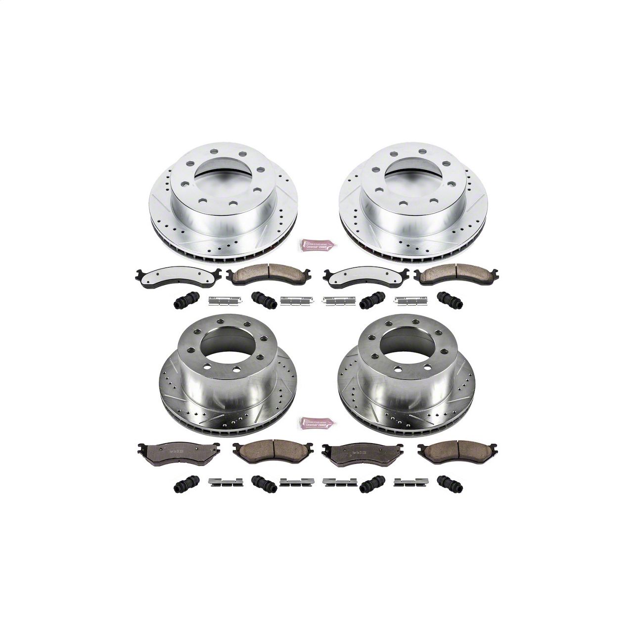 Built for Durability and Maximum Stopping Power. This brake kit includes high-performance brake pads that are engineered to withstand the rigors of towing, hauling, and other heavy-duty applications. The rotors are slotted and drilled to prevent heat buildup, extending the life of your brake system and ensuring reliable performance over time. Whether you're driving in tough conditions or just need a dependable braking system, this kit delivers outstanding results.