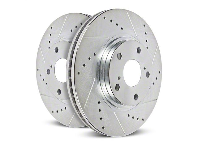 Made for Incredible Stopping Power. By cross-drilling and slotting, Power Stop combines the best of 2 technologies. Even if your old discs have enough meat on them after refinishing to fulfill minimum thickness criteria, don't try to reuse them. During a panic stop, mass absorbs heat fast, but on a lengthy downhill or in heavy stop-and-go traffic, surface area and flowing air are required to keep the rotors cool. Cross-drilling a disc increases surface area for better cooling, but it also improves braking performance dramatically in the wet. Cross-drilling prevents water from accumulating between the pad and the disc surface, causing the pad to hydroplane and drastically reducing braking performance.