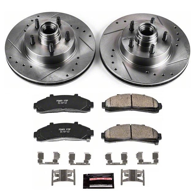 Z23 Evolution Sport Brake Upgrade KitPowerStop is on a mission to deliver an easy and affordable way for any driver to upgrade their brakes - no matter where or how they use their vehicle. Forget standard, off-the-shelf parts. Our Z23 Evolution Sport Brake Upgrade Kit comes with everything you need, from pads, rotors and premium stainless-steel hardware for an easy, bolt-on upgrade for your daily-driver. Along with increased braking power, the Carbon-Fiber Ceramic brake pads feature a low-dust formula to keep those wheels looking great while you say goodbye to nasty brake dust. These pads combine with Drilled & Slotted rotors to ensure a cool, smooth ride that protects against rust and corrosion. Give your daily-driver the easy and affordable performance upgrade it deserves with the Z23 Evolution Sport Brake Upgrade Kit.Everything You Need Is In The BoxZ23 Carbon-Fiber Ceramic Brake PadsUpgraded braking performance designed for every-day cars, trucks and SUVsDual-Layer Rubberized ShimsBetter noise insulator for virtually silent brakingDrilled, Slotted & Zinc Plated RotorsProvide maximum cooling and helps protect against rust and corrosionPremium Stainless-Steel HardwareHi-Temp Brake Lubricant