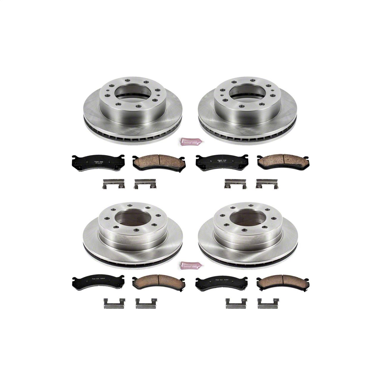 Improved Safety and Control. Elevate the braking performance of your GMC Sierra 2500 HD with the PowerStop OE Replacement 8-Lug Brake Rotor and Pad Kit for the Front and Rear. Upgrading to this kit enhances your vehicle's stopping power and control, especially under heavy loads or in challenging driving conditions, ensuring a safer drive. This direct fit ensures easy installation and a perfect alignment with your vehicle's braking system, providing optimal performance right out of the box.