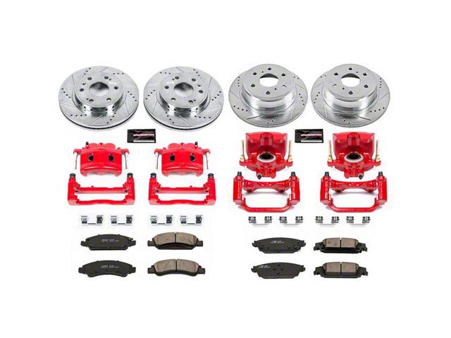 Description. PowerStop is on a mission to deliver an easy and affordable way for any driver to upgrade their brakes - no matter where or how they use their vehicle. Forget standard, off-the-shelf parts. Our Z23 Evolution Sport Brake Upgrade Kit with Powder Coated Calipers comes with everything you need, from pads, rotors, calipers and premium stainless-steel hardware for an easy, bolt-on upgrade for your daily-driver. Along with increased braking power, the carbon-fiber ceramic brake pads feature a low-dust formula to keep those wheels looking great while you say goodbye to nasty brake dust. These pads combine with Drilled & Slotted rotors to ensure a cool, smooth ride that protects against rust and corrosion. The Powder Coated Calipers not only protect against corrosion, but also really stand out behind your wheels! Give your daily-driver the easy and affordable performance upgrade it deserves with the Z23 Evolution Sport Brake Upgrade Kit with Calipers.