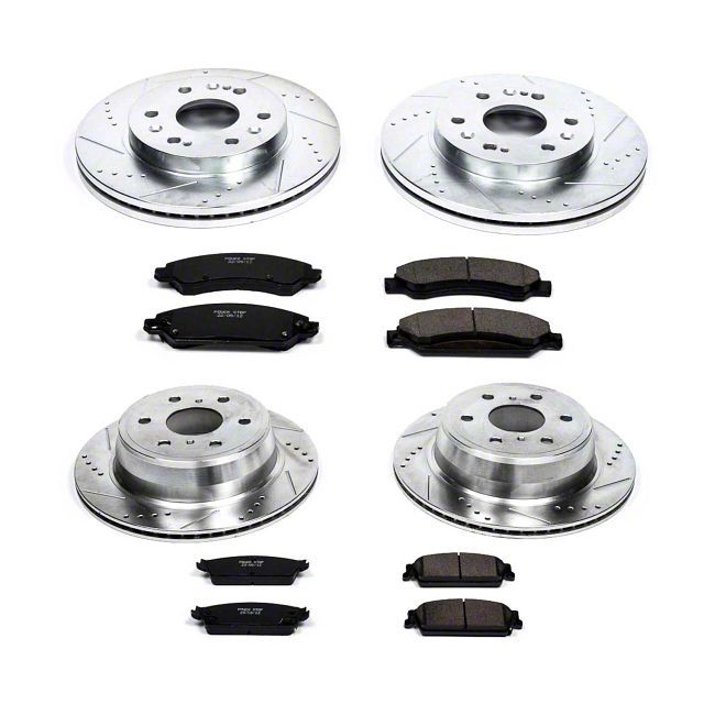 PRODUCT OVERVIEW. The PowerStop Z23 Evolution Sport 6-Lug Brake Rotor and Pad Kit; Front and Rear offers a complete braking upgrade designed to improve stopping power and durability. Designed for daily drivers, this kit delivers enhanced performance and cleaner wheels by combining carbon-fiber ceramic brake pads with precision-engineered drilled and slotted rotors. It is ideal for drivers seeking a reliable, bolt-on solution to optimize their vehicle’s braking experience.