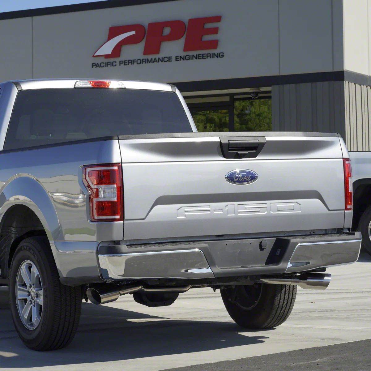 Application. The PPE Dual Exhaust System with Polished Tubes and Polished Tips fits 2015-2020 5.0L F-150 models.