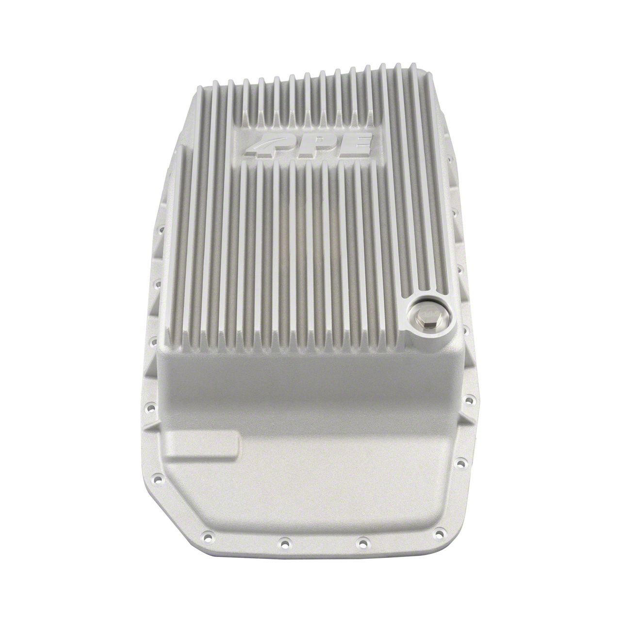Maximum Cooling and Capacity. The PPE Heavy-Duty Cast Aluminum Transmission Pan is a performance-focused upgrade that adds 3.3 quarts of additional fluid capacity to your F-250 Super Duty's 6R100 transmission. By increasing fluid volume and incorporating advanced cooling features, this pan reduces transmission operating temperatures, minimizes wear, and improves reliability under heavy towing, hauling, or off-road conditions.