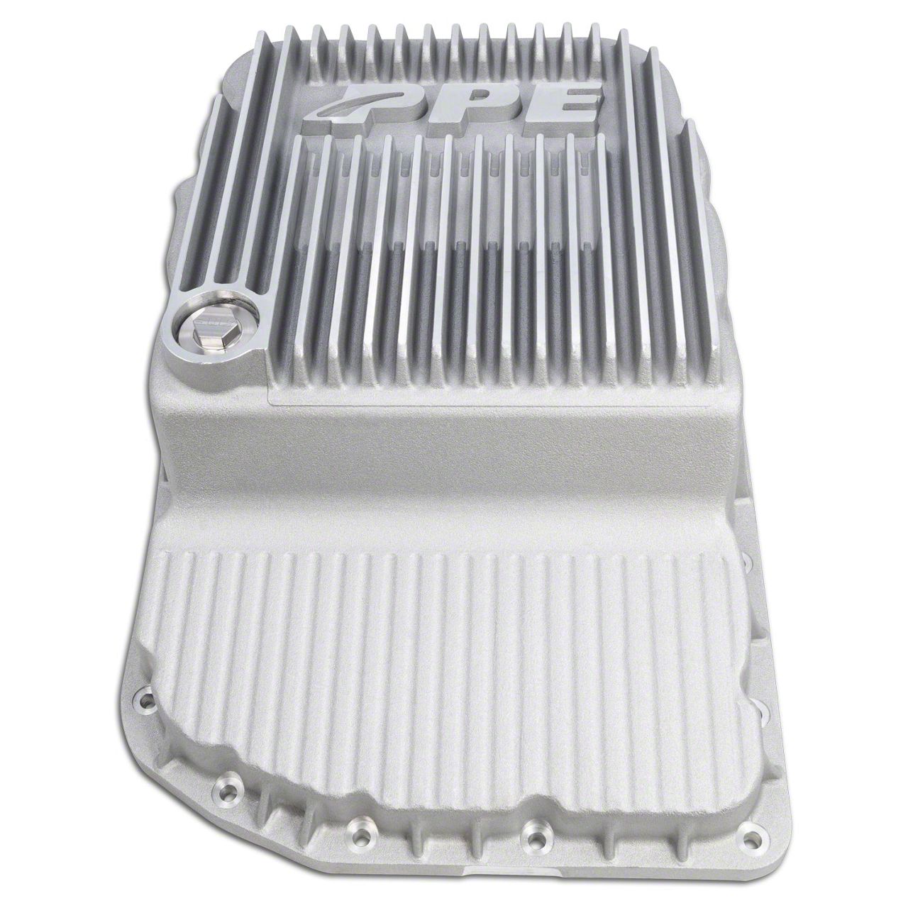 Enhanced Fluid Capacity. The PPE Heavy-Duty Cast Aluminum Transmission Pan is a replacement transmission pan designed to hold more fluid compared to the stock model. This increase in fluid capacity helps to improve transmission performance and cooling, making it an essential upgrade for heavy-duty use.