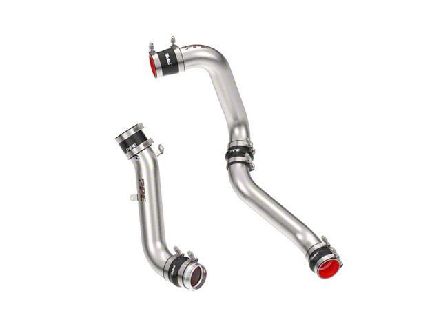 Replace the factory restricting 2.5 Inch resonator-equipped hot pipe and plastic cold pipe, with our kit featuring 3 Inch hot side and 3.25 Inch cold side full 304 stainless steel tubing. The kit comes complete with a factory-style billet aluminum adapter, PPE 5-ply silicone couplers, and 304 stainless-steel clamps. No modifications are required as it uses all the existing mounting locations and sensors.