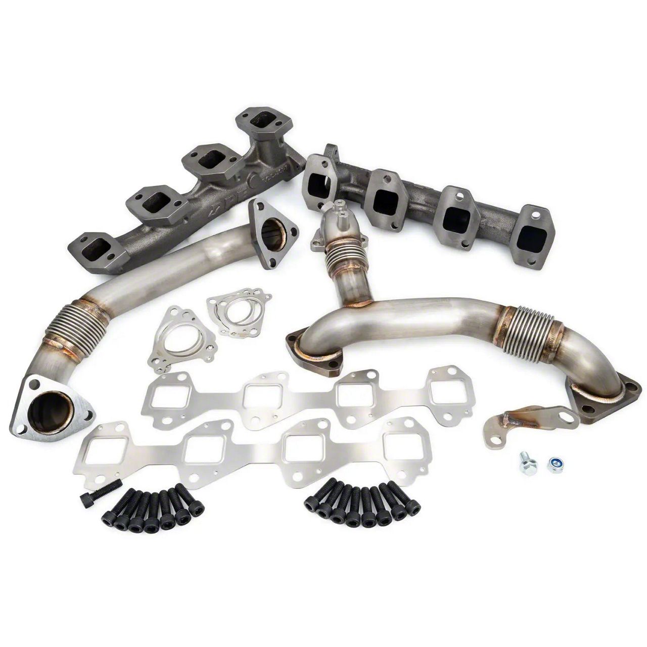 Application. The PPE High-Flow Exhaust Manifolds and Up-Pipe Kit fits 2011–2016 6.6L Duramax GMC Sierra 3500 HD models.
