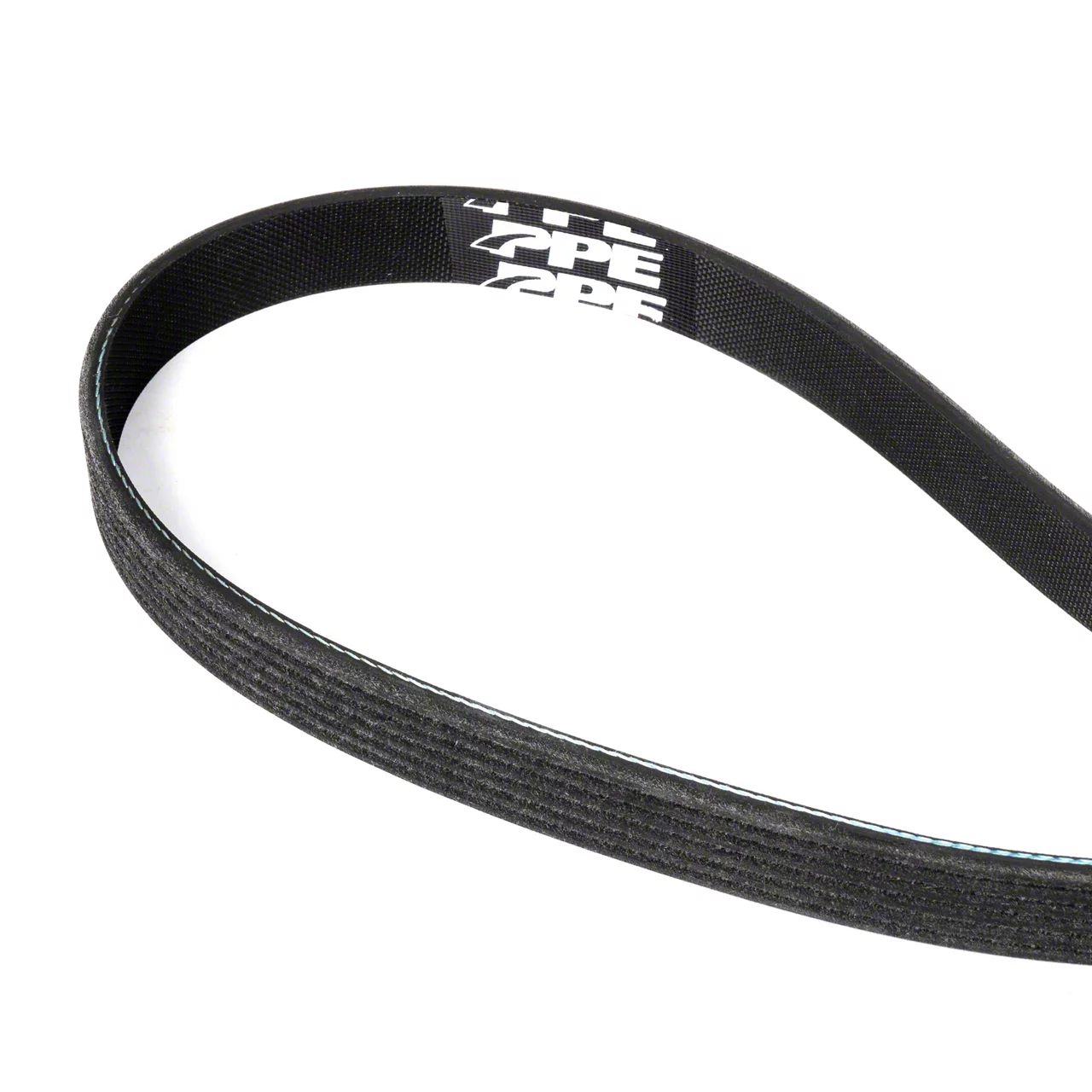Construction and Appearance. The PPE Serpentine Belt features a matte black finish, providing a sleek and durable look. Crafted from heat-resistant EPDM material and reinforced with aramid fibers, the belt is designed to withstand the high stresses of engine operation. The precision-ground belt profile ensures smooth, efficient operation, contributing to the extended life of your engine’s accessories.
